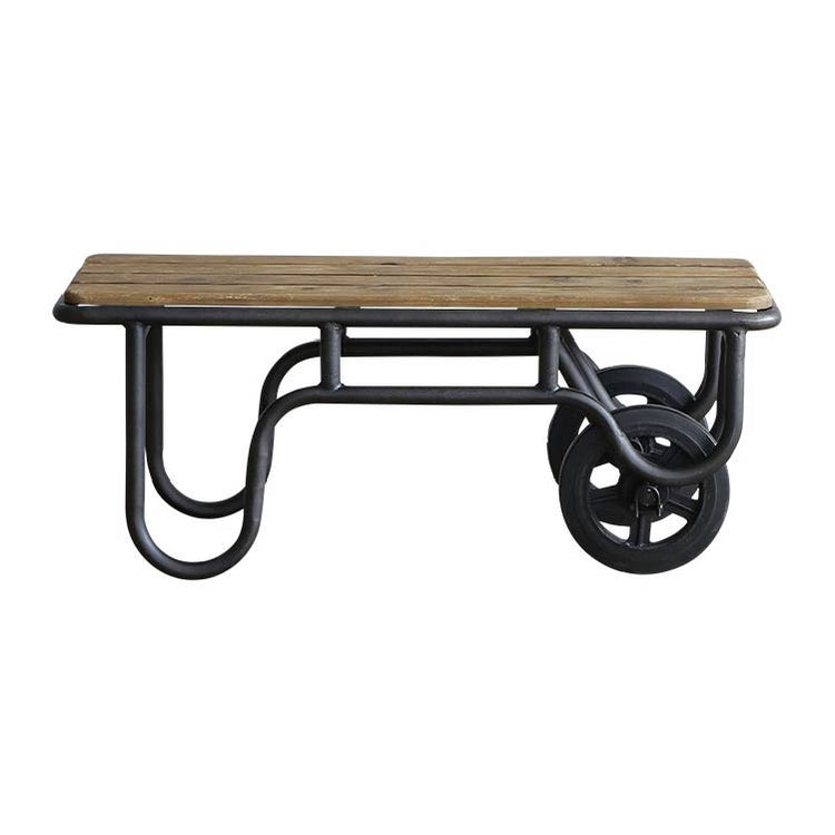 建築廃材や工業用パーツを取り入れ、鉄や木の素材感を無骨に表現することで独特な風合いを生み出しています
