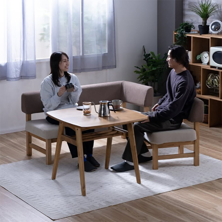 アマンは通常のダイニングテーブルより低めで、ソファと組み合わせる事を考えて作られています